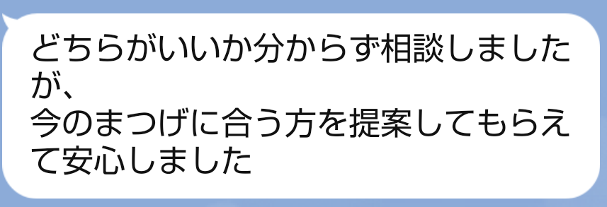 《お客様の声》「迷っていた方が安心して選べた理由」2026.03.28「どちらかいいか分からず相談しましたが、今のまつげに合う方を提案してもらえて安心しました」 「自然なのに、目元が整って見えるのが嬉しいです」 そんなお声をいただくことが増えています。